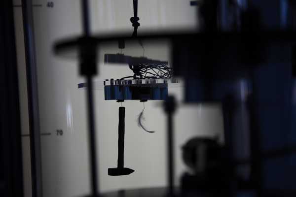 Hammer and Feather drop, Fall-Experiment #7, Agnes Meyer-Brandis, 2011, in cooperation with the Institute for Geophysik and extraterrestrial Physics of the TU Braunschweig (IGEP), research group planet formation. |